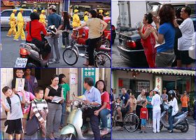 ![]() 恒春街头观看游行队伍拍手叫好的民众 |