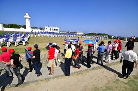 ![]() 中国大陆的观光客在台湾的最南端鹅銮鼻灯塔驻足观赏天国乐团的演出 |