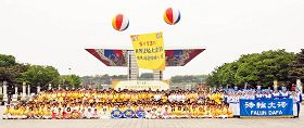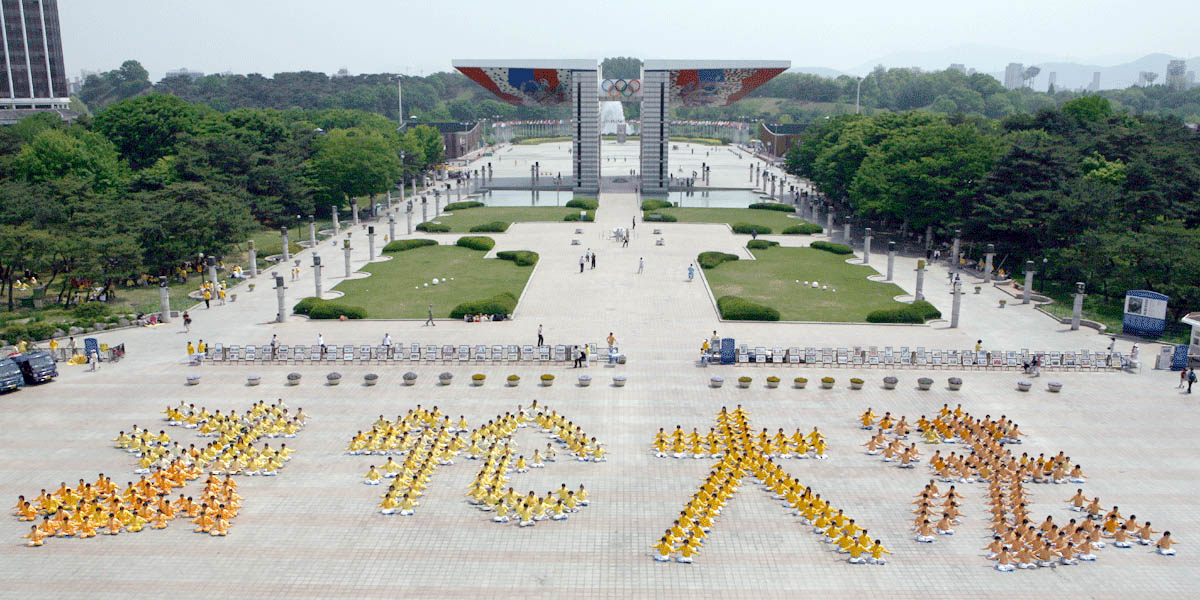![]() 千余位韩国法轮功学员聚集首尔的奥林匹克公园排字“法轮大法” |