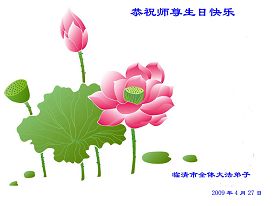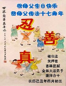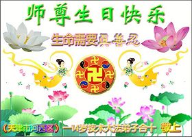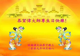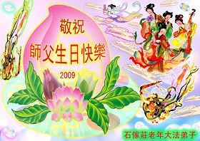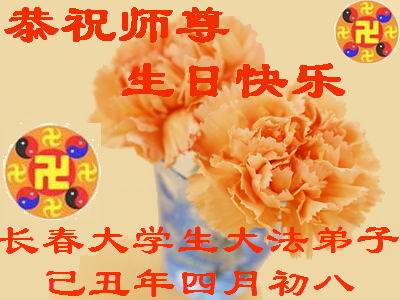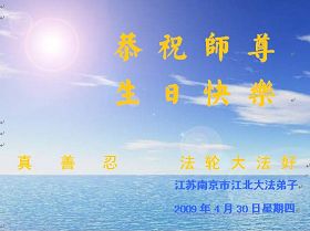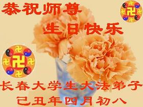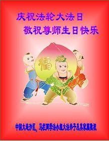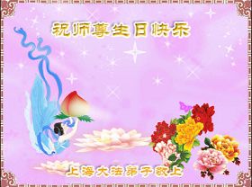 ![]() 波士顿法轮功学员恭祝师尊五十八岁华诞 |