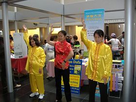 ![]() 法轮功展位前人群络绎不绝 |