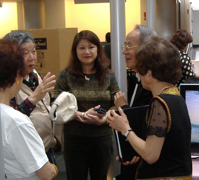 ![]() 大陆游客观看展板,了解法轮功真相。 |
