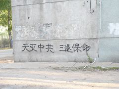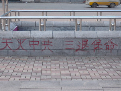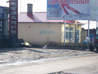 大陆东北某地出现的粘贴黑龙江某地区真相标语和粘贴在大陆某地繁华地段写的一些庆祝大法日的标语