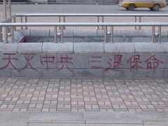 在今年的五月十三日,即世界法轮大法日,在某地繁华地段写的一些庆祝大法日的标语。