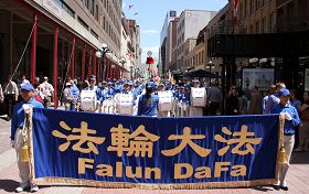 ![]() 由渥太华和蒙特利尔两地法轮功学员组成的天国乐团在渥太华繁华的Spark街以及国会山前演奏 |