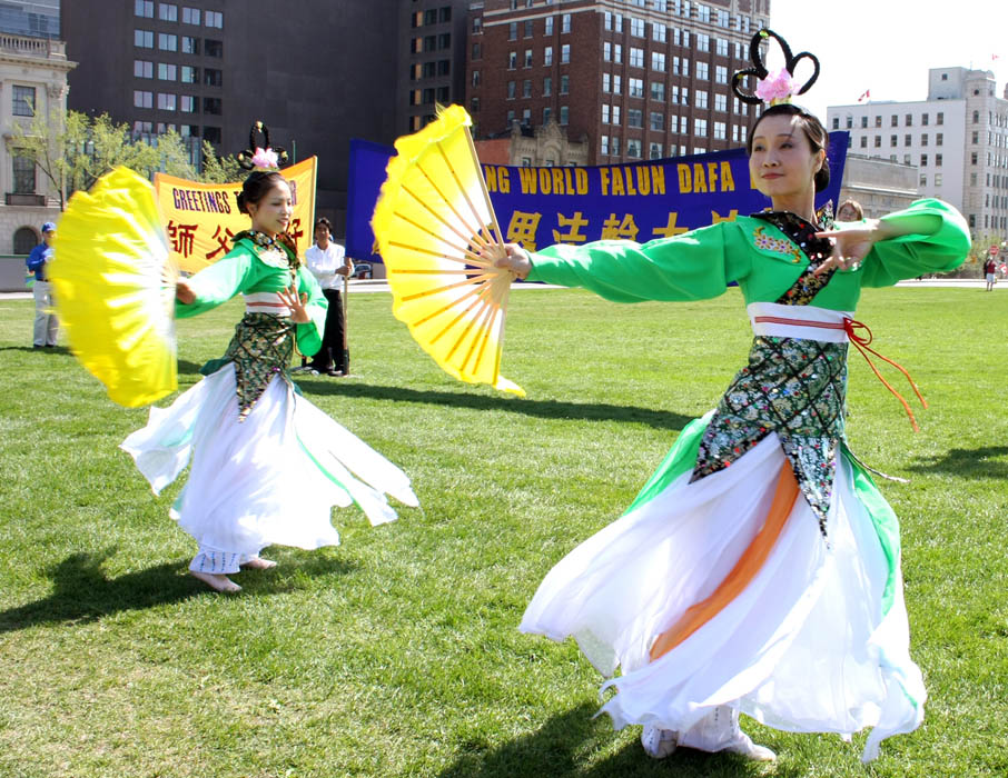 ![]() 法轮功学员表演扇子舞,欢庆世界法轮大法日 |