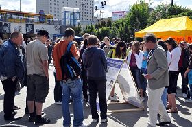 有好几拨中国人也来到这里,听到了真相,表示三:退.(退出中共党、团、队),有人当场表示,希望能看到法轮功的书籍,要重新认识法轮功。