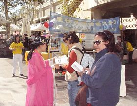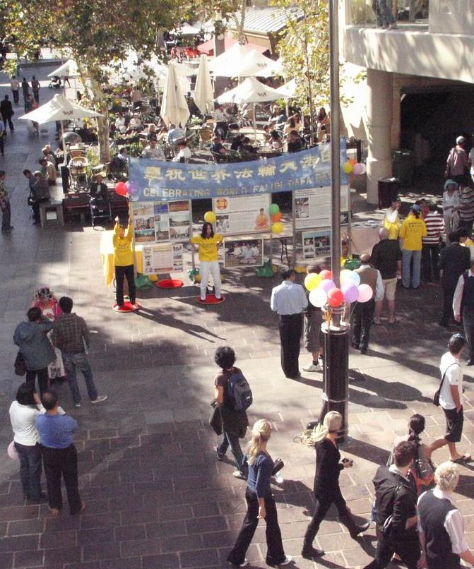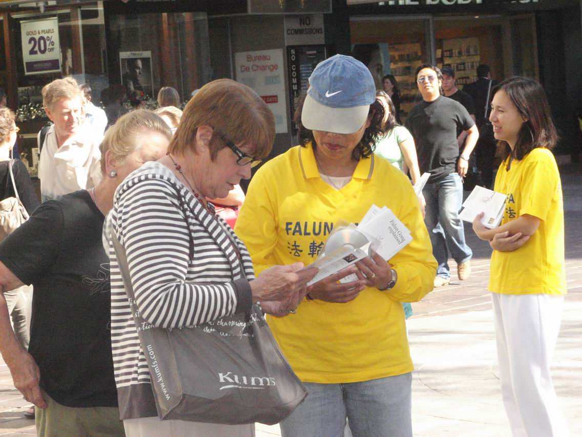 众多路人和游客接阅传单,观看展板,向学员了解大法与发生在中国的迫害真相。不少有缘人表示想要学习法轮功,其中笔者所遇就有数位太极爱好者,还有一些佛教徒、瑜伽习练者等,都对学法轮功表示出浓厚兴趣。