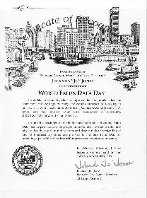 能够凝聚在一起共同改善社区所需要的力量是通过众人的信念和勇气,并协调一致的努力取得的。我,市议会议员琼兰达·琼斯 (Jolanda Jones),带着我诚挚的敬佩,和休斯敦法轮大法学会一起,表达对世界法轮大法日的褒奖。
