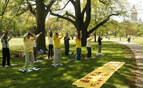 ![]() 二零零九年五月十三日(星期三),康州法轮功学员来到首府哈特福德市(Hartford)中心的布什耐尔公园(Bushnell),以炼功洪法的方式庆祝“世界法轮大法日” |