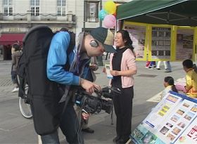 挪威国家电视台也到现场拍摄庆祝世界法轮大法日的活动。