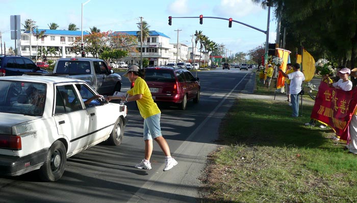 ![]() 为庆祝“法轮大法日”,塞班岛法轮功学员在五月十三日,在当地繁华地段拉横幅、讲真相,告诉人们大法美好。 |