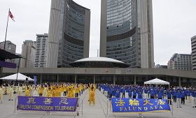 ![]() 法轮功学员在多伦多市弥敦•飞利浦广场集体炼功 |