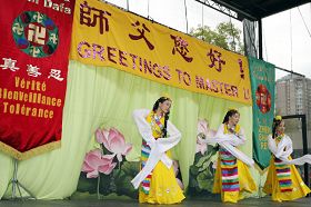 ![]() 学员以歌舞表演颂扬法轮大法的美好 |