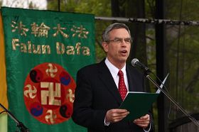 联邦美国事务部长肯特(Peter Kent)出席了当天的庆祝活动。他说,法轮大法洪传十七年,真、善、忍的理念为无数的人带来了身心的健康。“在我们庆祝的时候,需要记住有数百万的法轮功学员还在因为他们的信仰而遭受迫害。”肯特表示,保守党政府坚持要求中国当局尊重中国人的信仰自由。