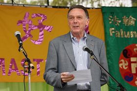 ![]() 联邦美国事务部长肯特(Peter Kent)出席了今天的庆祝活动。他说,法轮大法洪传17年,真、善、忍的理念为无数的人带来了身心的健康。 |