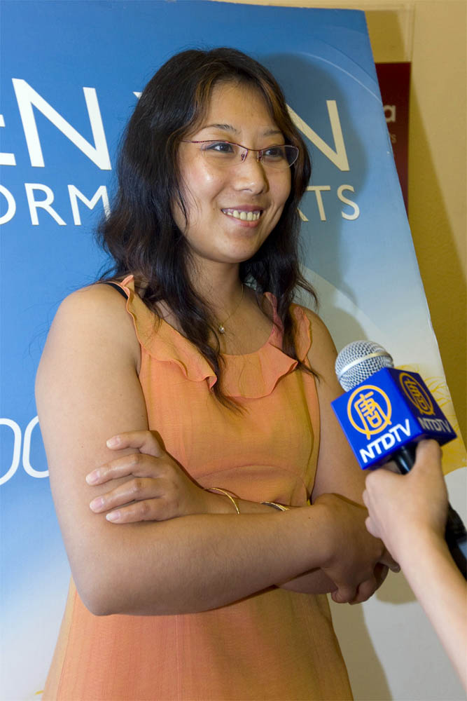 来美国一年多的安娜是在电视上看到了神韵的广告,觉得很值得看,便带着女儿一同光看了周日压轴场的演出,神韵的精彩远远超出了她的期待。