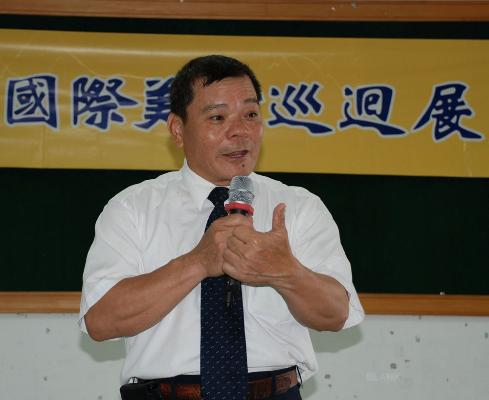 萧校长接着表示,感谢真善忍国际美术巡回展能到学校展出,让位于南台湾的学生能欣赏到呈现“真、善、忍”内涵的国际一流艺术作品,提升学生的艺术视野。