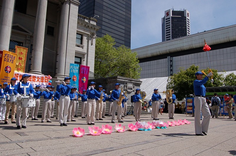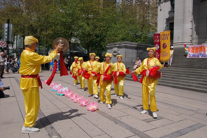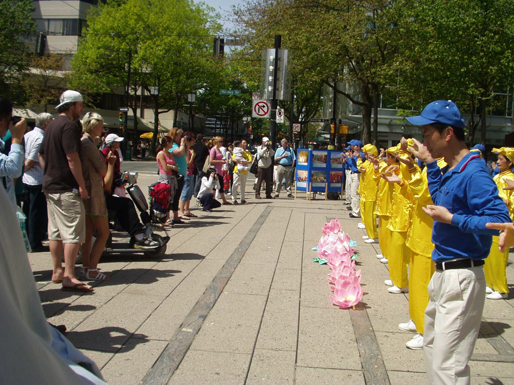 居住在温哥华市中心的西人玛丽(Mary)看到法轮功学员表演的舞蹈不住赞叹说:“太神奇了,太神奇了,平时我们都不大关注在艺术馆前的活动,过路的当地人几乎目不斜视,可一有法轮功的活动人们就会停下来围观。哪里可以学功?我也好想学。”