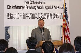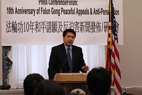 ![]() 法轮功发言人张而平说:“每一个时代都有关键的时刻、关键的事件。我相信中国的法轮功问题将影响到当今人类福祉,我们的基本人性正在经受考验。” |