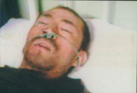 后来,恶警们抬来一把铁椅子把蔡国军按在上面,手脚都用铁环套住固定在椅子上,前胸用一挡板卡住,外加两条固定带绕过肩膀绑在身上,使人一点也动不了。第二天中午,蔡国军乘孟等人出去吃饭,从铁椅子上挣脱出来,在顺楼外墙壁上的漏雨管道向下爬时,管道脱落而从四层楼高处摔下,造成盆骨粉碎性骨折,脊椎骨两处骨折,右臂骨折。虽经过四个月的治疗,但仍然造成右腿残疾。