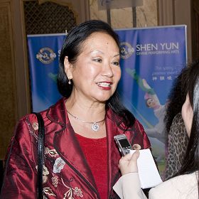 她说,这台晚会让西方人了解中华五千年的历史文化,例如服饰和舞蹈,“这是了不起的”。她说要叫她所有认识的人前来观赏神韵的演出。