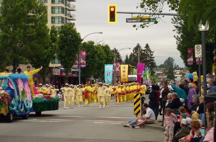二零零七年五月二十六日,温哥华法轮功学员应邀参加一年一度加拿大卑诗省新西敏市的国际Hyack节游行(2007 Hyack festival international parade),获得观众的热烈掌声和游行组织者颁发的总统奖,这是法轮功队伍第三次获得该节日游行的最高奖。