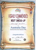 二零零八年一月二十六日法轮功学员应多个社区市政厅邀请分别参加了在各社区举办的澳洲国庆的庆典活动。其中之一的庆典大游行在悉尼西面蓝山山脚的一个叫格兰布 (Glenbrook)的小镇上举行,主办单位向法轮大法学会和新!唐!人:队伍颁发了“服装最佳奖”。