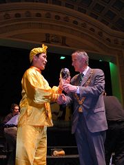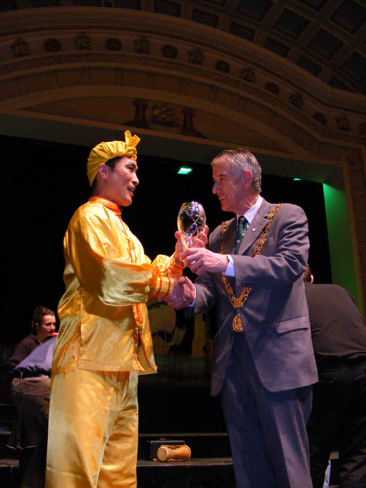![]() 科克市市长Cllr. Donal J. Counihan给法轮功团体颁发奖杯 |