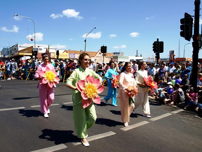 全澳洲一年一度的鲜花大游行,二零零八年九月二十日再度于昆士兰的图文巴市中心隆重登场。昆士兰法轮功学员自一九九九年起,年年受邀参加该游行,二零零八年更获游行队伍第三名的荣誉,颁奖者并邀请法轮功学员明年再来参加庆祝六十周年的盛大游行活动。