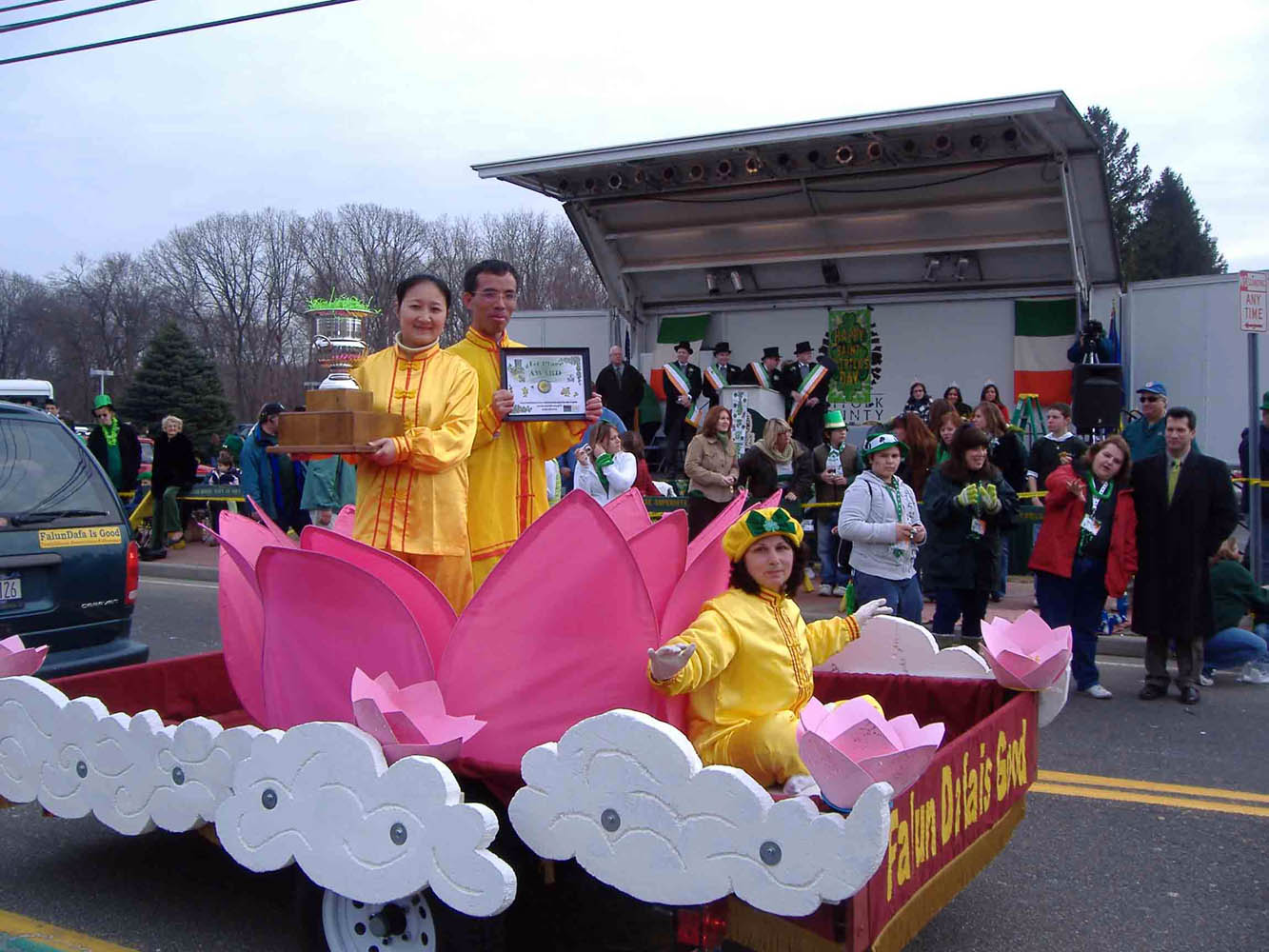 ![]() 二零零九年三月十四日和十五日,法轮功学员的队伍在Miller Place - Rocket Point的圣派翠克节游行中获头奖和最佳彩车奖 |