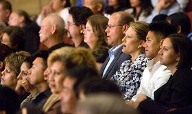 【明慧网二零零九年五月二十九日】(明慧记者李天行圣地亚哥报导)神韵巡回艺术团于二零零九年五月二十九日晚,在美国圣地亚哥加州艺术中心上演最后一场“春之旅”晚会。当晚剧院内一片欢腾。开场时,大幕乍起,观众席中便传出一片赞叹之声。