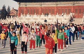 下面是一九九九年中共镇压法轮功前,北京大法小弟子集体炼功的祥和、美好场面。愿不久的将来中国大陆的人们能自由享有他们的信仰——让法轮大法的洪大法光照彻中土大地!