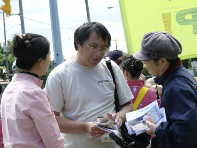 从中国大陆移民来多伦多八年的于先生经过现场时,激动的说:“这样的活动非常好,就是要用这样形式来让所有大陆来的人都知道:中共的日子不长了。我自己也在大.纪.元;网上宣布三:退.了。但还有很多人不知道,所以这种活动要多举办。”