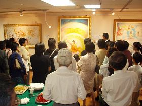 ![]() 各界政要名流送来花篮祝贺“真善忍国际美术巡回展”开幕 |