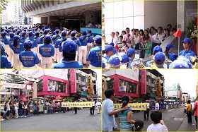 ![]() 阵容浩大壮观的“天国乐团”为美展踩街宣传,吸引很多群众围观 |