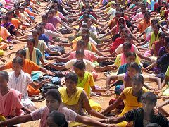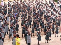 距离班加罗尔很远的Sri Adichunchanagiri Mahasamsthama Moth,地处偏僻乡村。这所宗教学校,从小学、中学、高中、大学一连贯,学生共计超过二千人。在长老亲自陪同下,各班级老师带着学生,列队学炼法轮功。法轮大法正在印度成千上万的学生中迅速传播。