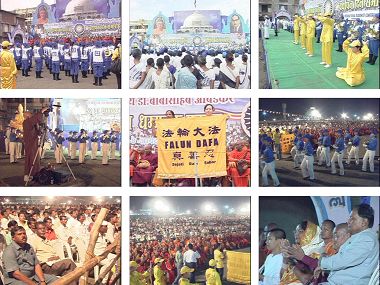 天国乐团不但吸引多家媒体的争相报导,还现场直播到全印度各地。大喇嘛和印度政府的国防部长、迈索尔市长也亲临迎接,一起聆赏天国乐团震撼人心的演奏。民众看到天国乐团、“法轮大法”的横幅,都非常的开心、热情,想办法靠近索取法轮功材料,想学炼法轮功。