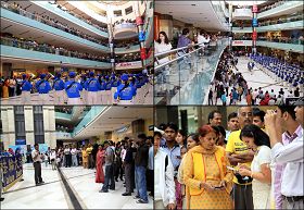 ![]() 德里最大的购物广场Ambience Mall,从一楼到五楼的游客都群聚过来欣赏天国乐团的演奏,掌声不断。 |