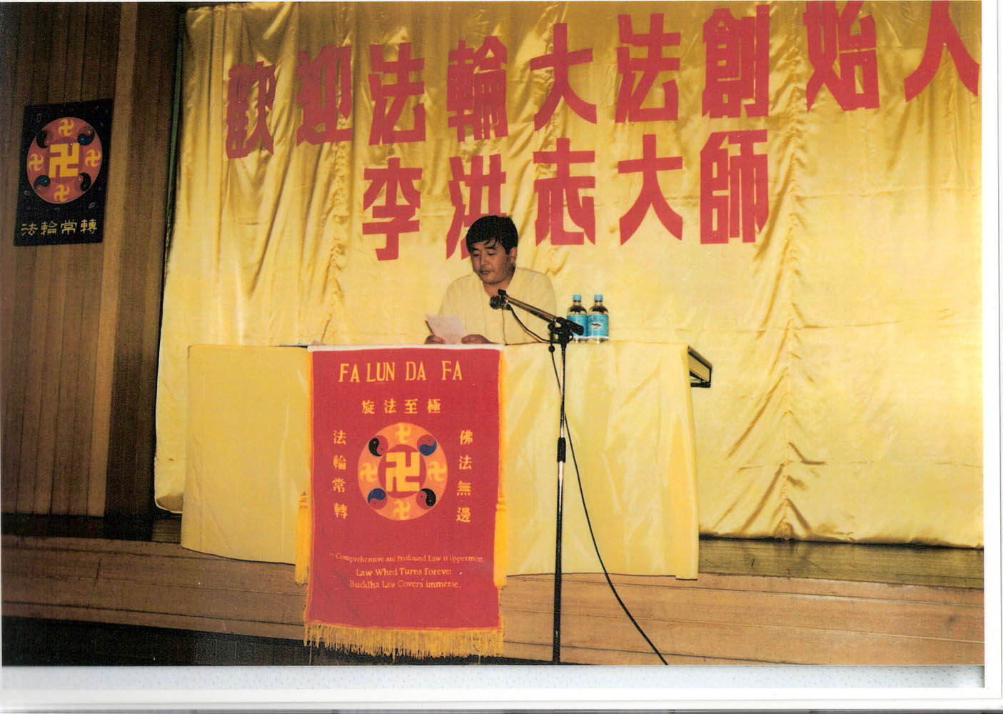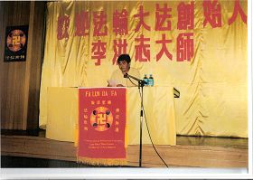 ![]() 李洪志先生于一九九七年十一月在台北三兴国小讲法 |
