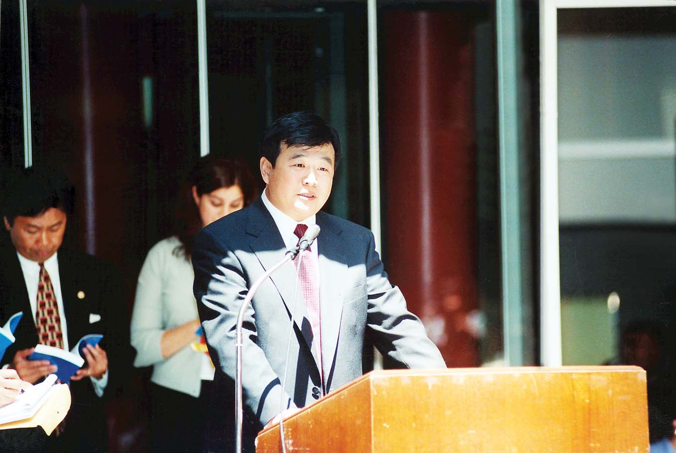 ![]() 一九九九年六月二十五日李洪志先生在接受美国伊利诺州州长、州财政部长和芝加哥市长褒奖的颁奖仪式上讲话 |
