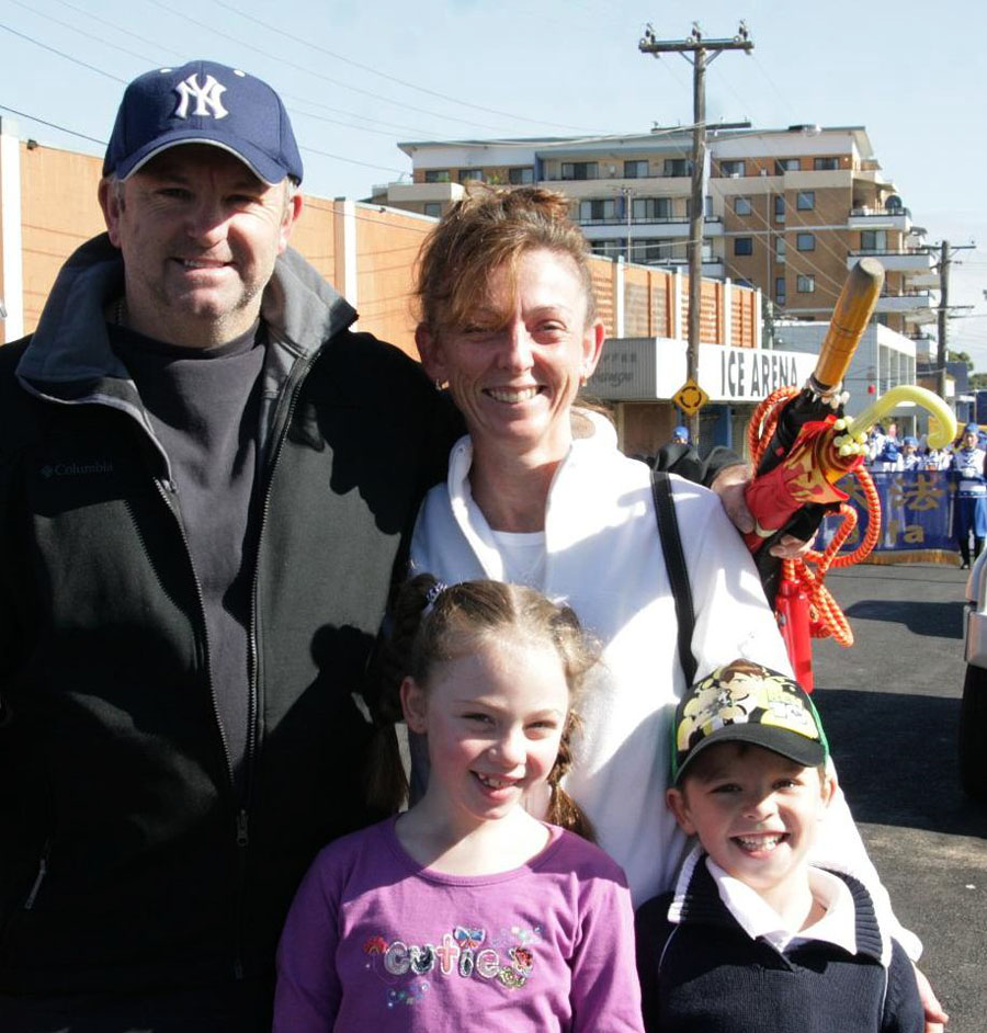 ![]() 在法轮功队伍经过时,当地居民瓦威克(Warwick)与妻子米雪儿(Michelle)带着孩子,全家赶紧在队伍前合影留念。他们为此感到很自豪。 |