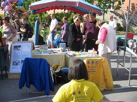 活动中,当地的民选官员约见了法轮功学员,并表示希望学员与他们经常保持联系。法轮功学员还把传单资料发到每个商家的展位上,几乎所有的展位负责人都高兴的接过传单并表示要好好研究。活动至晚上六点结束,许多当地民众知道了法轮功真相。