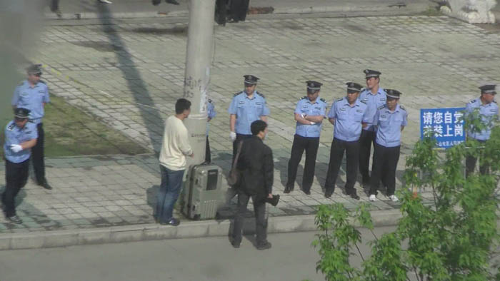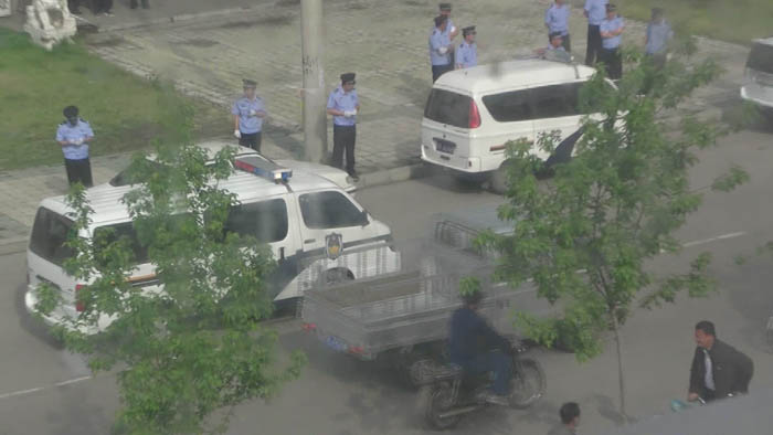 在非法对张培训、包永胜、栗崇富羁押了6个月后,金山屯法院对三位大法弟子开庭了。早上7点,法院门口二百米之内开始封锁路口,不管是车辆还是行人一律不许通过,封锁区内拉满了醒目的彩色隔离绳,警察、便衣随处可见,极其密集,肆意呵斥靠近的行人,街道的街长也都出动了,往回拉他们街区的人(法轮大法弟子)。金山屯河北有二个大法弟子路过附近被立即绑架进警车里拉走,有一个外地回家探亲的大学生好奇的用手机拍照“奇景”,立即被抓捕进警车,差点把手机给摔碎。远远围观的百姓说:“真是好大的排场,就是判杀人犯也没见过这么戒备森严的场面!”