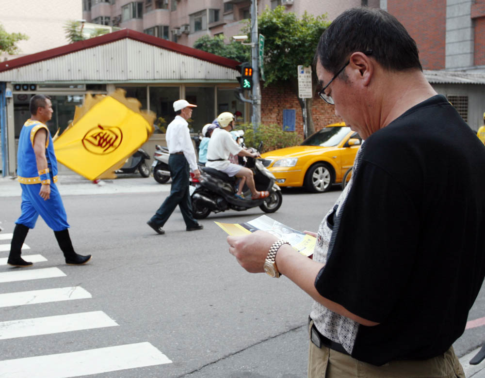 ![]() 浩大、热闹的游行队伍于六月七日周日的下午在台北县中永和踩街,吸引许多民众驻足观看。 |