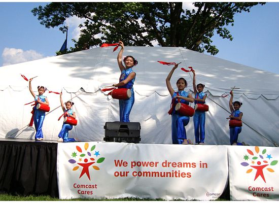 大费城地区明慧学校舞蹈队首次应邀参加表演,为大家带来了彩绸舞“希望之歌”和腰鼓“法轮大法好”两个节目。孩子们纯洁真诚的表演深深地打动了观众的心,尤其是腰鼓“法轮大法好”,音乐喜悦欢畅加上鼓声铿锵有力,让在场的观众感到无比的震撼,许多观众眼里闪着感激的泪花。演出获得了最响亮的掌声,主持人对表演者们表示了真诚的谢意。