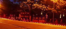 这时天黑了,学员们点燃了蜡烛,悼念共产政权的受害者。在简短的演讲后,学员宣读了要求停止迫害的声明,并呼吁中国人民退出中共。