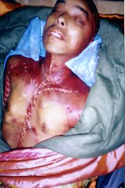 二零零六年七月刘生被非法劳教一年半,在劳教所仅一个月,刘生就被折磨致吐血,不能进食,后劳教所怕刘生死在里面承担责任,将刘生放出。