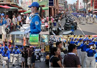 为了让凤山市市民都知道这个美展的讯息,把握机会前来观赏,主办单位特别邀请天国乐团演出并踩街宣传,沿途市民纷纷被震撼的鼓乐声吸引,驻足观看。队伍经过市集、商城区,更多市民观看、照相,有的人还跑到前头询问在那儿展出。踩街还在进行中,就有不少市民接到传单直接前来市公所看画,更有两人看完画作,拜托导览员帮他们买《转法轮》,表示要学炼法轮功。