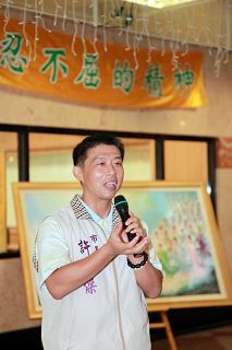 ![]() 立法委员余政宪服务处主任蔡曜阳表示:希望“真善忍美展”能遍及台湾每个角落。 |